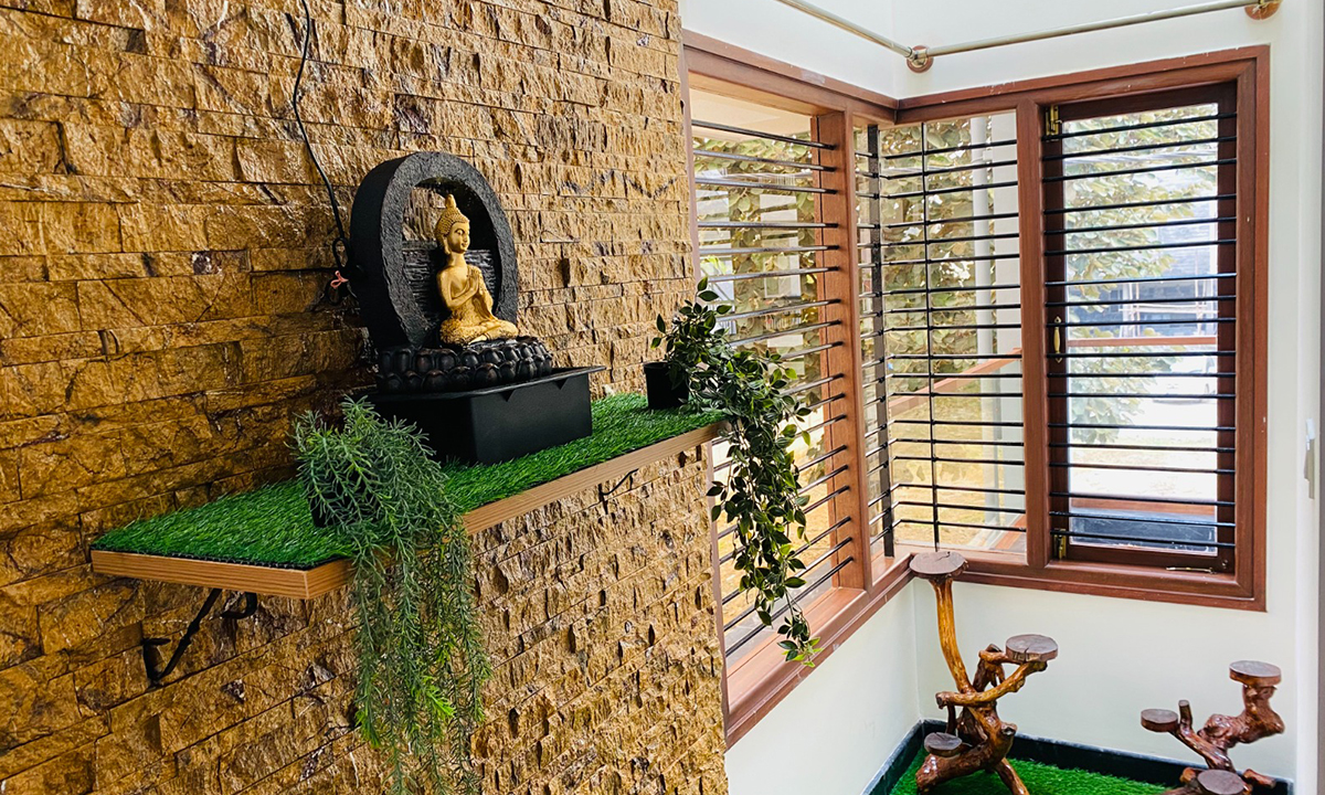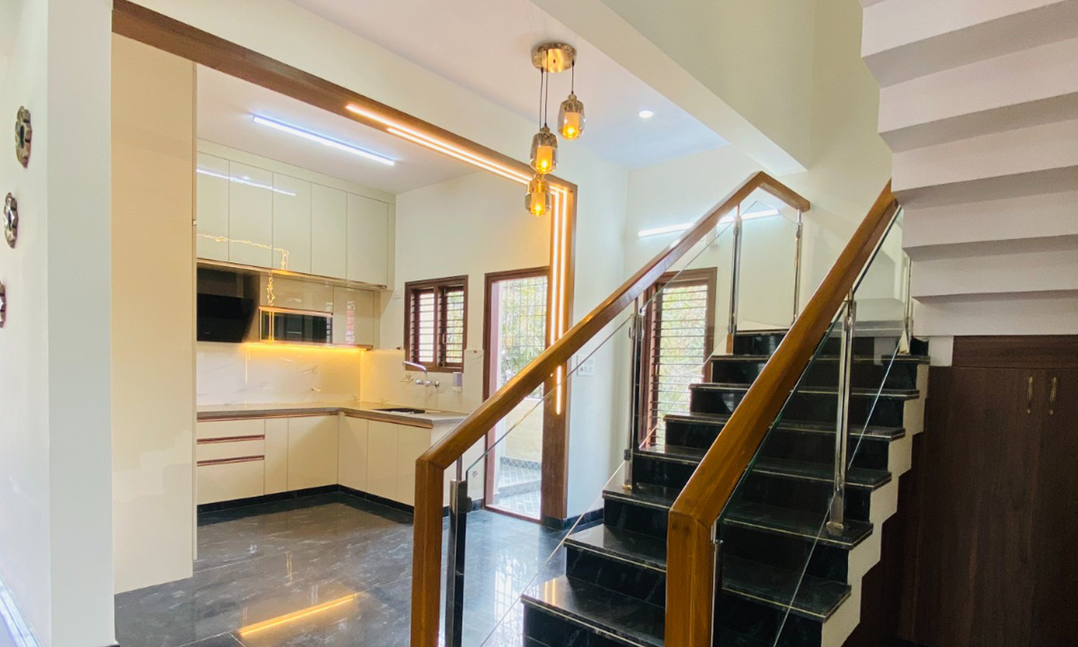 In the 1st FLOOR: Living Area, Modular Kitchen, Courtyard, Pooja Room
